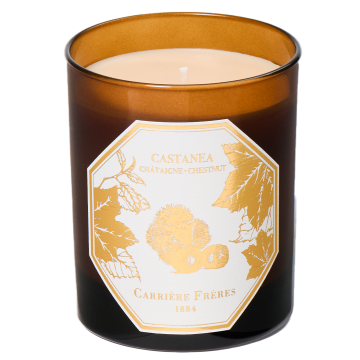 An ode to autumn, the limited-edition Chestnut candle captures the magic of forests ablaze with colour and the art of savouring the suspended moments of the season. In this golden atmosphere, it diffuses the round and generous scent of roasted chestnuts. Its heart of dried fruit blends with the suave accents of benzoin, cedar and sandalwood, enhanced by smoky and vanilla touches. A warm and enveloping creation, which evokes the sweetness of a harvest shared by the fire. This candle is available in 185g format for a burning time of about 45 hours.