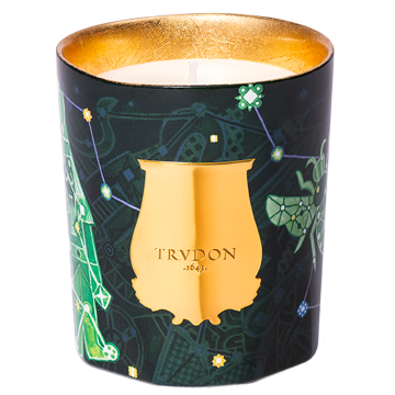 For the holidays, Trudon unveils Enchanted Night and illuminates winter with a sky studded with gold and magic. Under the celestial vault, precious and dreamlike symbols come to life in a sparkling dance: a nutcracker from a Hoffmann tale, a clock ready to strike the twelve strokes of midnight, a safe filled with treasures or the emblematic bee of the Maison. This profusion of stars and magical colours is born from the meeting of two worlds: the poetic imagination of the Belgian illustrator Brecht Evens, who sketches dreamed constellations, and the know-how of Trudon, who reinterprets these motifs to create a unique, festive and enchanting collection. Four limited-edition celestial fragrances make up this olfactory constellation, including the Fir Candle. It has a warm atmosphere, like a winter evening spent by the fire. The comforting spices of cinnamon and clove open the composition with brilliance, before giving way to the deep swirls of incense and the resinous facets of balsam fir and myrrh, softened by a touch of vanilla. With the Enchanted Night Limited Edition, candles are revealed as true precious objects: an interior dressed in hand-applied gold leaf and vibrant illustrations by Brecht Evens. Every detail extends the wonder, right down to the midnight blue case with a matte finish, dotted with hot-stamped constellations, which radiates all the magic of the holidays. This 270g limited edition candle offers a burn time of between 55 and 60 hours.