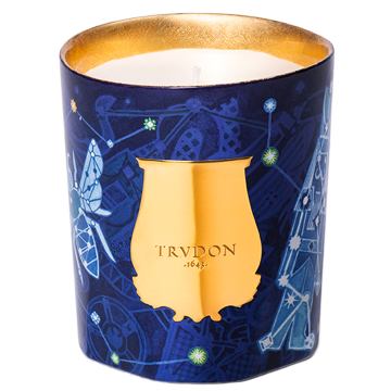 For the holidays, Trudon unveils Enchanted Night and illuminates winter with a sky studded with gold and magic. Under the celestial vault, precious and dreamlike symbols come to life in a sparkling dance: a nutcracker from a Hoffmann tale, a clock ready to strike the twelve strokes of midnight, a safe filled with treasures or the emblematic bee of the Maison. This profusion of stars and magical colours is born from the meeting of two worlds: the poetic imagination of the Belgian illustrator Brecht Evens, who sketches dreamed constellations, and the know-how of Trudon, who reinterprets these motifs to create a unique, festive and enchanting collection. Four limited-edition celestial fragrances make up this olfactory constellation, including the Luna candle. It reveals a refined and luminous fragrance: the spicy opening of cloves and cinnamon softens into a floral heart of peony, before blossoming into a deep trail with amber and musky facets. A delicate composition, a true winter flower, which invites sharing and the finesse of the holidays. With the Enchanted Night Limited Edition, candles are revealed as true precious objects: an interior dressed in hand-applied gold leaf and vibrant illustrations by Brecht Evens. Every detail extends the wonder, right down to the midnight blue case with a matte finish, dotted with hot-stamped constellations, which radiates all the magic of the holidays. This 270g limited edition candle offers a burn time of between 55 and 60 hours.